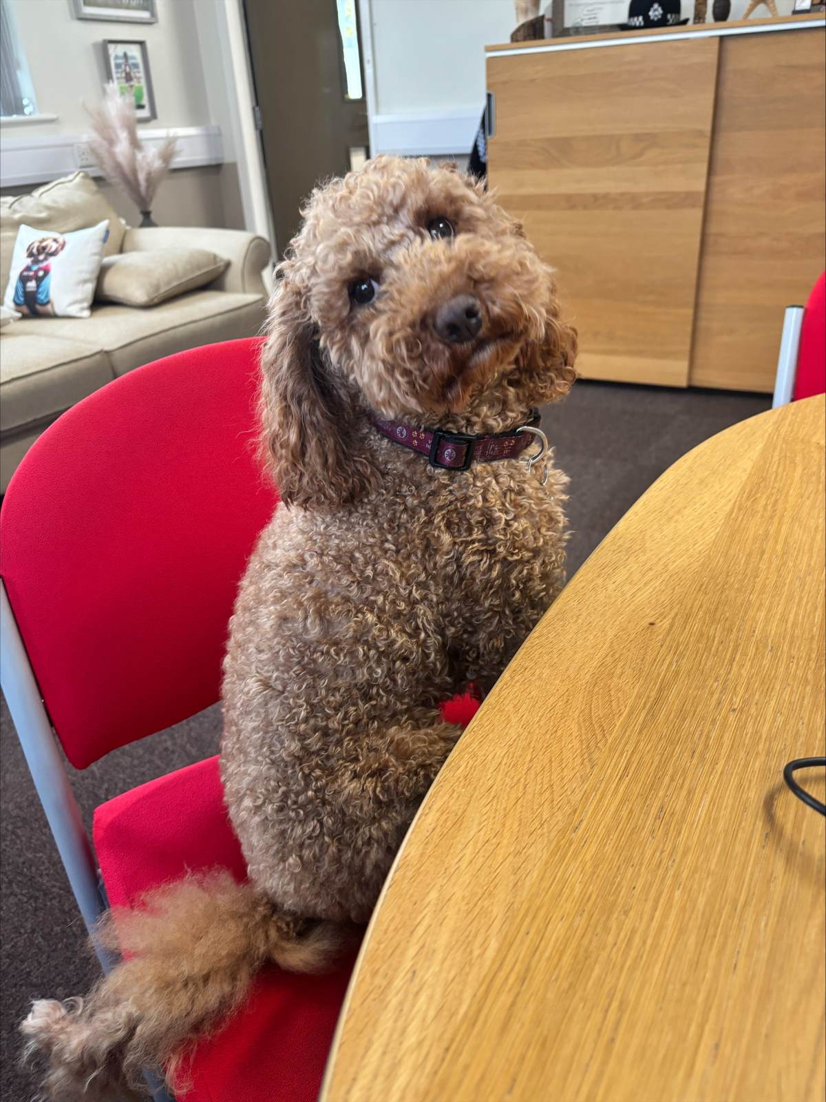 Meet Rufus the school dog mentor. Rufus is a Cockapoo.